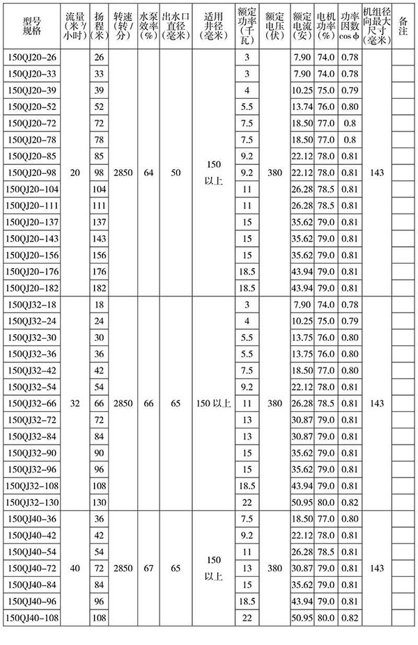 150/ 額定揚程: 150 米